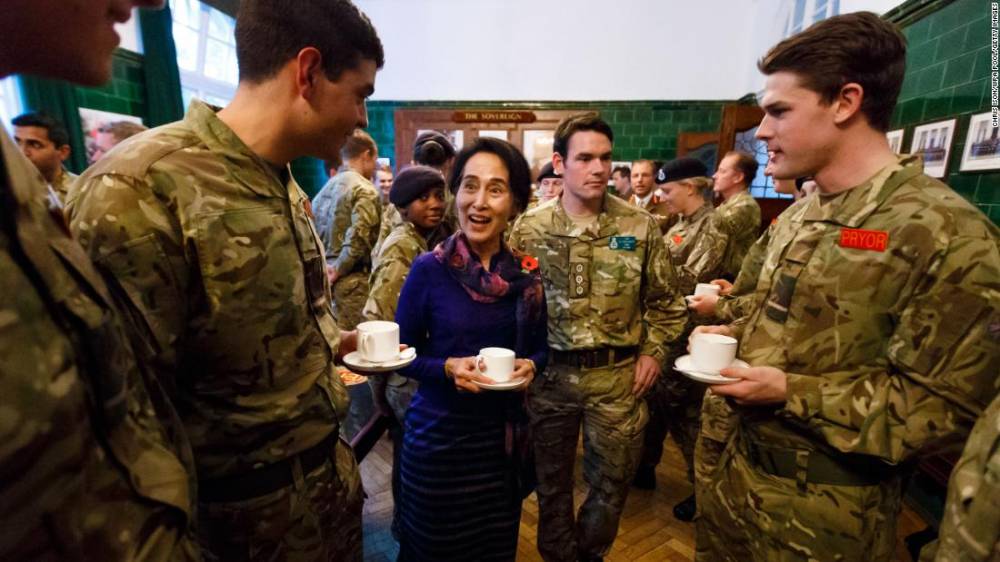 Photos: Aung San Suu KyiSuu Kyi joins officer cadets for tea while visiting a military academy in Camberley, England, in 2013.Hide Caption 21 of 37