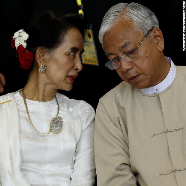 Photos: Aung San Suu KyiSuu Kyi and President Kyaw talk at a conference in Naypyidaw in 2016.Hide Caption 28 of 37