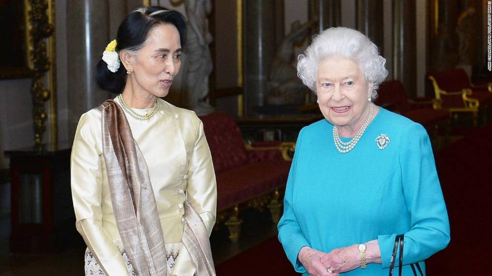 Photos: Aung San Suu KyiBritain’s Queen Elizabeth II greets Suu Kyi ahead of a private lunch at Buckingham Palace in 2017.Hide Caption 33 of 37