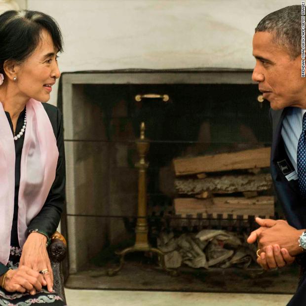 Photos: Aung San Suu KyiSuu Kyi meets with US President Barack Obama in the White House Oval Office. Obama later visited her lakeside villa in Myanmar. It was the first visit to Myanmar by a sitting US president.Hide Caption 20 of 37