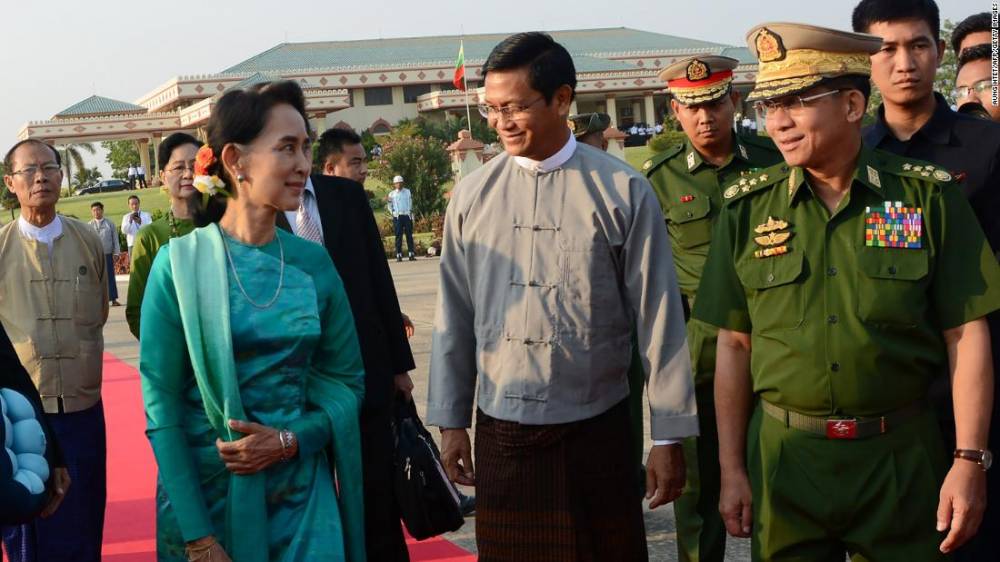 Photos: Aung San Suu KyiSuu Kyi walks with Gen. Min Aung Hlaing, the country’s military leader, at the Naypyidaw city airport in 2016.Hide Caption 27 of 37