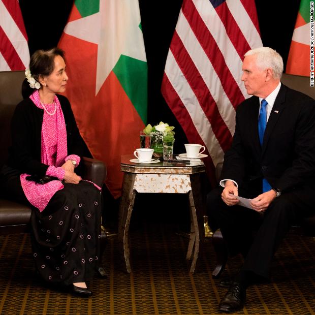 Photos: Aung San Suu KyiUS Vice President Mike Pence meets with Suu Kyi on the sidelines of the ASEAN summit in Singapore in 2018.Hide Caption 34 of 37