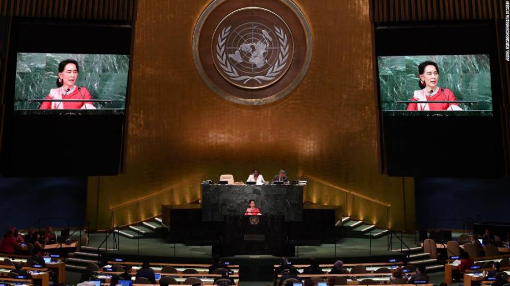 Photos: Aung San Suu KyiSuu Kyi addresses the United Nations General Assembly in New York in 2016.Hide Caption 29 of 37