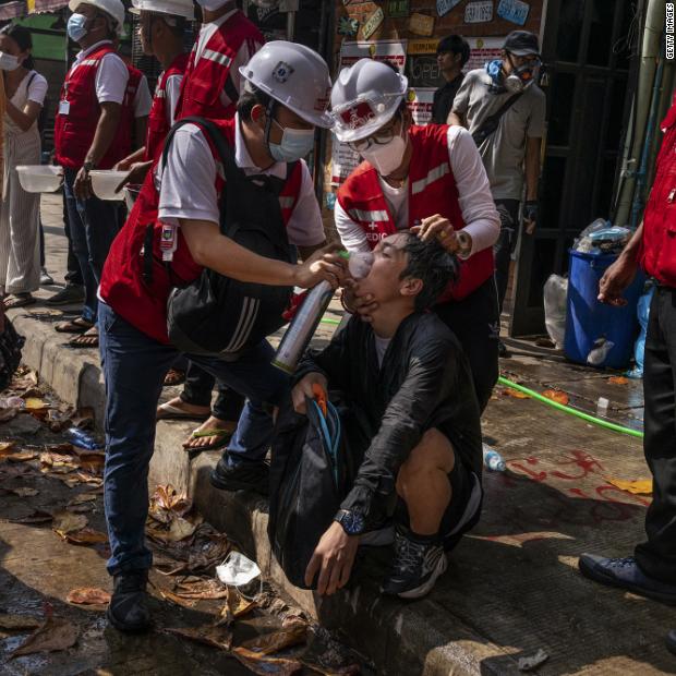 Photos: Unrest in MyanmarMedics help supply oxygen to a protester who was exposed to tear gas in Yangon on March 3.Hide Caption 27 of 82