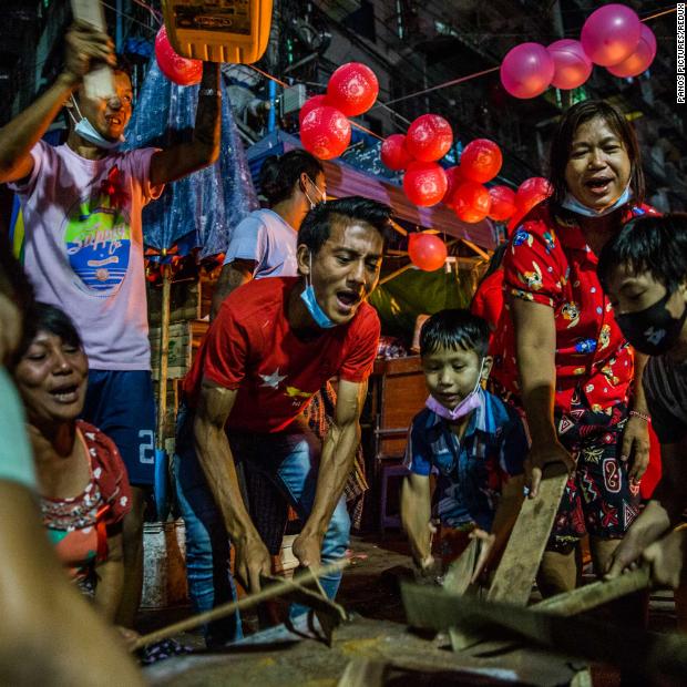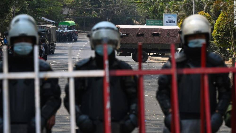 Chaotic scenes of makeshift barricades on a bridge set on fire by police during a demonstration against the military coup in Yangon. “With the internet shut down, the people inside areas sealed off by the military and police have no access to the outside world,” said John Quinley, senior human rights specialist at the rights group Fortify Rights. “The junta is trying to stop any information about the violence they are committing from getting out. The junta is trying to create a total blackout.”Security forces were reported to have opened fire in several locations of Yangon just after midnight Wednesday and several injuries were reported. Meanwhile, barricades made by residents in the city were also removed.A 28-year-old man died of an apparent gunshot wound in overnight protest in Yangon, a local journalist and eyewitnesses in Myanmar said Wednesday. Local witnesses reported hearing a loud bang during a peaceful protest, after which the man immediately fell to the ground and began bleeding.Protesters rushed the man to hospital where he was treated but later died from his injuries. Local media Myanmar Now said the incident took place in Mingalar Taung Nyunt township during a crackdown on a nighttime protest. CNN could not independently verify that security forces shot the man. More than 200 people have been killed since the coup, according to advocacy group Assistance Association for Political Prisoners (AAPP). At least 74 people were killed on Sunday alone and 20 more killed on Monday, the group said. Mass funerals for many of the dead were held across Yangon on Tuesday.Activists have highlighted the particular concern for those in the Yangon district of Hlaingthaya, a poor industrial neighborhood to the northwest of the city that is home to many migrants and factory workers. One of Yangon’s biggest districts and a protest stronghold, it bore the brunt of Sunday’s casualties and several Chinese-owned factories were set ablaze there.