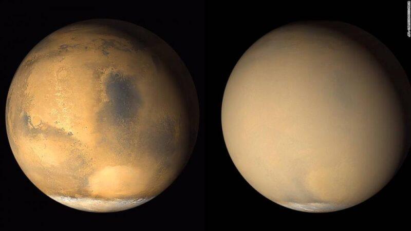 Photos: The best moments on MarsMars is known to have planet-encircling dust storms. These 2001 images from NASA’s Mars Global Surveyor orbiter show a dramatic change in the planet’s appearance when haze raised by dust-storm activity in the south became globally distributed.Hide Caption 19 of 30