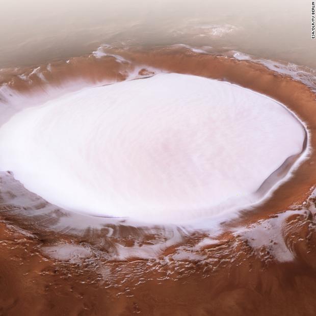Photos: The best moments on MarsThe European Space Agency’s Mars Express mission captured this image of the Korolev crater, more than 50 miles across and filled with water ice, near the north pole. Hide Caption 9 of 30
