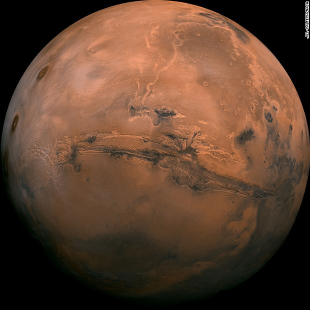 Photos: The best moments on MarsThis perspective of Mars’ Valles Marineris hemisphere from July 9, 2013, is actually a mosaic comprising 102 Viking Orbiter images. At the center is the Valles Marineris canyon system, over 2,000 kilometers long and up to 8 kilometers deep. Hide Caption 5 of 30