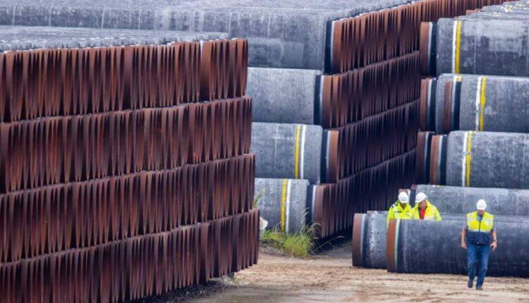 Stacked pipes for Nord Stream 2 on the German island of Rügen, where ships are prepared for further construction of the pipeline.