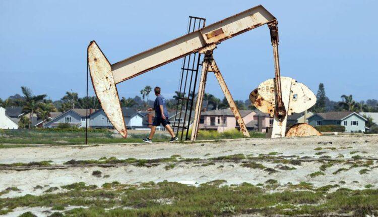 A man walks on a path in front of an oil derrick near the Huntington Beach Oil Fields on April 20, 2020 in Huntington Beach, California.Michael Heiman | Getty Images