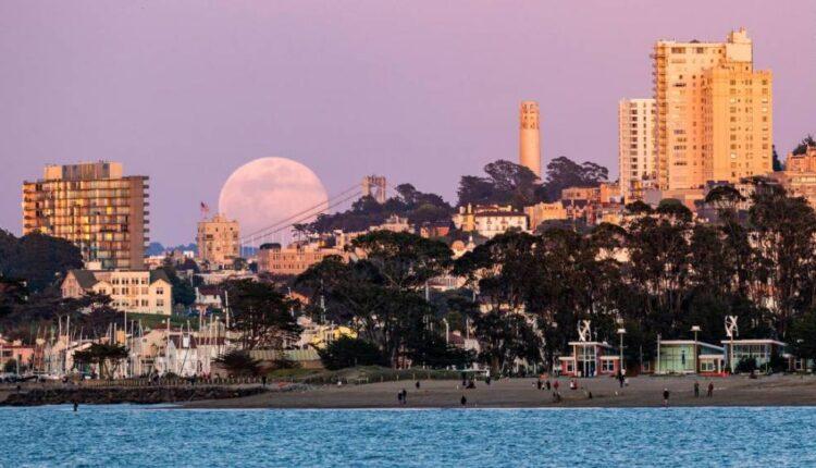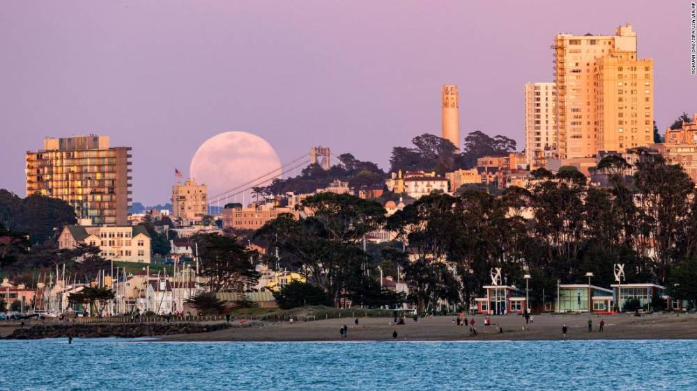 Photos: The April pink supermoon in picturesThe full moon rises above the horizon in San Francisco, California.Hide Caption 1 of 11