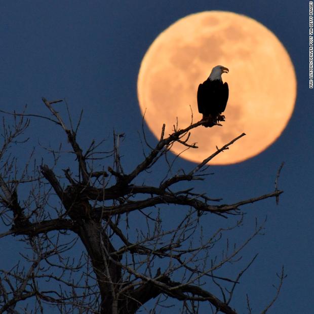 Photos: The April pink supermoon in picturesA bald eagle sits near its nest while the super pink moon rises in the distance at Chatfield State Park in Littleton, Colorado.Hide Caption 2 of 11