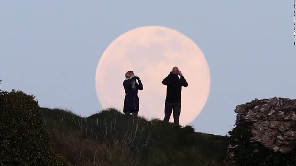 A pink supermoon rises over the Rock of Dunamase in County Laois in the Republic of Ireland.This moon gets its name from the pink early springtime blooms of the Phlox subulata plant, also called “moss pink.” It’s native to eastern North America.Native American tribes across the United States have their own names for the moon, according to the Western Washington University Planetarium. Many of those names are also associated with springtime signs, including the melting of snow and the return of geese after their journey south for winter. The Cherokee tribe of the East Coast calls it the “kawohni” or “flower moon,” and the Creek tribe of the Southeast refers to it as “tasahcee-rakko” or “big spring moon.”There are also several religious celebrations that align with this moon, according to NASA. For Eastern Christians, this is the full moon before Easter, called the Paschal Moon. (Eastern Christianity marks Easter on Sunday, May 2). For Hindus it is Hanuman Jayanti, the celebration of the birth of Lord Hanuman. For Buddhists, it is Bak Poya, which marks the Buddha’s visit to Sri Lanka to settle a dispute between chiefs, avoiding a war. This full moon is also near the middle of the holy month of Ramadan, which Muslims observe in honor of the Quran being revealed.