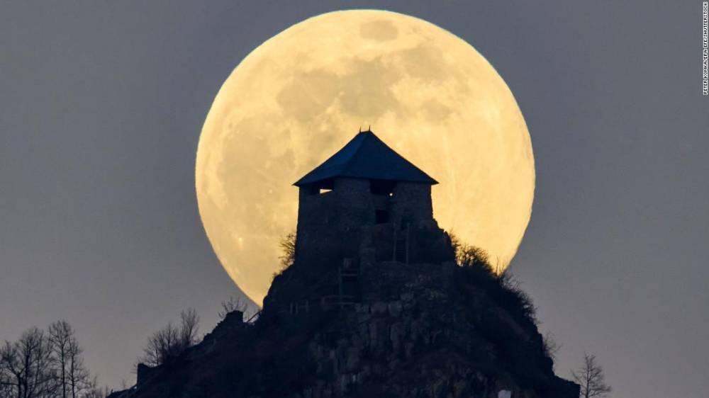 Photos: The April pink supermoon in picturesThe full moon rises above Salgo castle in Hungary. Hide Caption 9 of 11