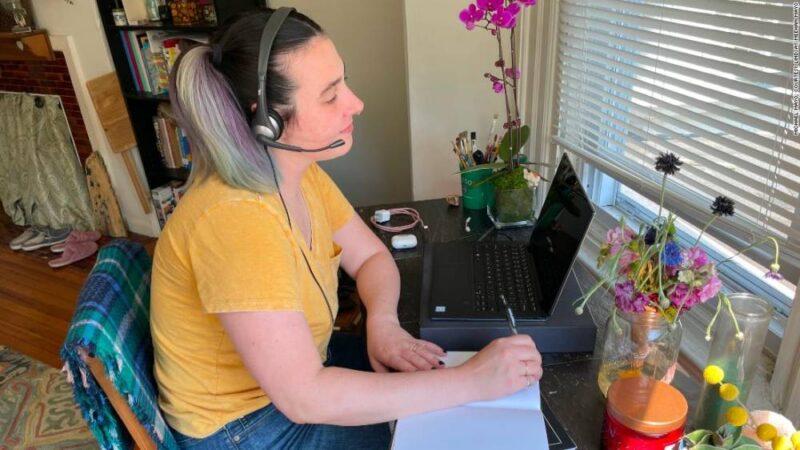 Lindsay Meehan Mayo, a former executive pastry chef, now enjoys working from home.For Lindsay Meehan Mayo, a former executive pastry chef, getting furloughed last year presented a chance to rethink her career path. Mayo now works two part-time jobs for mental health and peer support groups. It can be hard to toggle between the two, and the pay is “significantly” lower, she said. But she still feels that the move is the right one. “I feel so good about what I’m doing now,” she said. She likes helping people and “working from home is wonderful,” she said. The pay cut means she’s putting less away in savings and is careful about spending money on luxuries like restaurant meals, Mayo said, but she and her spouse have not had to dip into their savings.