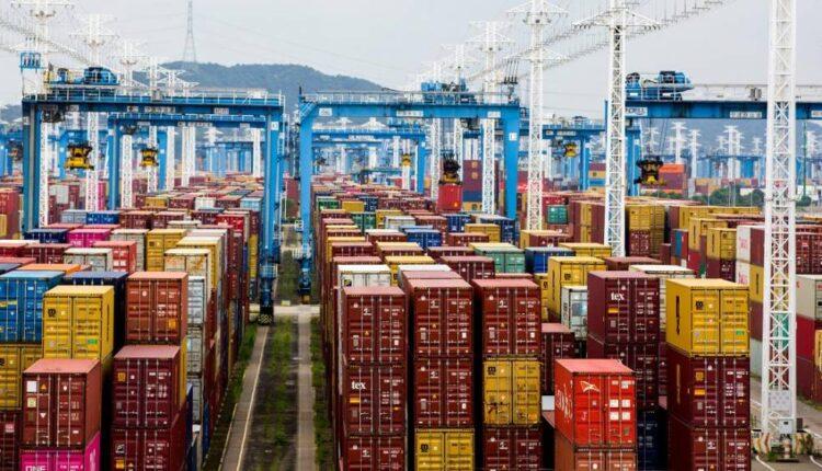 Containers are seen transported at Ningbo-Zhoushan port on August 15, 2021 in China.