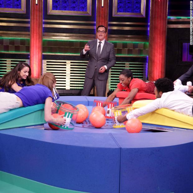 Photos: Superstar gymnast Simone BilesBiles and other Olympic athletes play “Hungry Hungry Humans” on “The Tonight Show” with Jimmy Fallon.Hide Caption 12 of 27