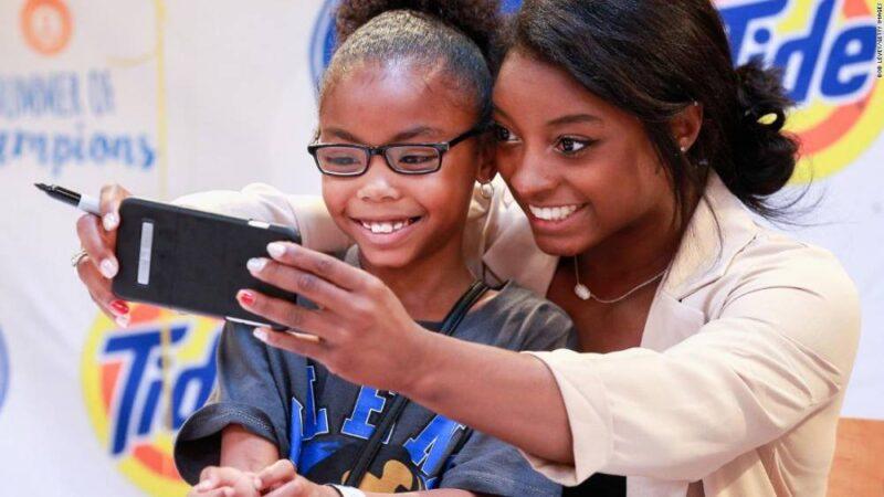 Photos: Superstar gymnast Simone BilesBiles takes a photo with a young fan in her hometown of Houston in September 2016.Hide Caption 15 of 27