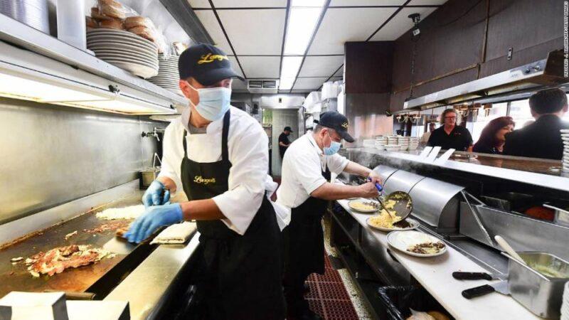 Kitchen staff prepare breakfast at Langer’s Delicatessen-Restaurant in Los Angeles on June 15, California’s first day of fully reopening its economy after some fifteen months of Covid restrictions.Eventually, these pandemic-era price hikes should normalize. Last month, Federal Reserve Chairman Jerome Powell, fielding questions about rampant inflation at a press conference, said there is no reason to assume prices will remain this high for an extended period. But quite how long they stick around remains uncertain.Powell isn’t alone in expecting inflation to fall. The bond market is pricing post-pandemic inflation to be as stubbornly low as it was before, head of income investing for the BlackRock Multi-Asset Strategies Group, Michael Fredericks said last week on CNN Business’ digital live show Markets Now.Last week, the 10-year Treasury bond yield dropped to its lowest level since February, indicating that investors likely see current price spikes as transitory, or are at least waiting to see how inflation will develop over the summer.Up next: June consumer price data is due on Tuesday.