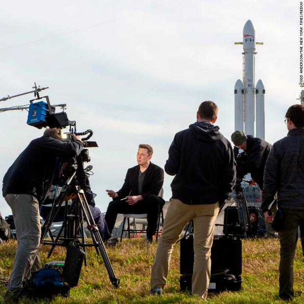 Photos: Billionaire entrepreneur Elon MuskMusk speaks to reporters in 2018, a day before SpaceX launched the Falcon Heavy, the world’s most powerful rocket.Hide Caption 26 of 35