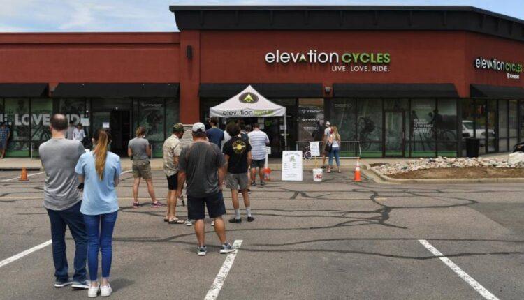 Customers wait outside to enter a bike shop in Highlands Ranch, Colorado. (Photo by RJ Sangosti/MediaNews Group/The Denver Post via Getty Images)New customers are looking for ways to be active and outdoors. Bike shop owners say that the closing of gyms and yoga studios during the pandemic has contributed. Others say customers are looking for a commuting alternative to public transportation. Social spacing is easiest on individual modes of transportation, like cars and bikes. In March 2020, US cycling sales increased 39% when compared with March 2019, according to the NPD Group, which tracks retail sales.”Bikes are like the new toilet paper,” Attayi said. “If it’s available, buy it.” Garfield Cooper, owner of ZenCog Bicycle Company in Jacksonville, Florida, has extra mechanics working to try to keep up with a repair backlog. Repairs that are usually done in 24 hours now require up to a month. Cooper, like Attayi, said he hadn’t had a day off since February.While his sales usually decline in the summer months with increased heat and humidity, Cooper said he hasn’t seen a lag in business yet. “It’s been a long time since the bicycle has been this important to the American people,” Cooper said. “It’s so cool they’re this interested in bike riding.”He’s struggling to keep things like bike seats and helmets in stock. Cooper said he’s regularly calling other shops to find parts he needs for repairs.Robert Keating, who owns the Triathlon Lab outside Los Angeles, said he’s never seen anything like the current bicycle boom in the 37 years he’s worked in bike shops. He’s shifted his shop from a focus on high-end bicycles to affordable bikes people are likely to ride in their neighborhood. Beach cruisers have been especially popular, he said.”Some people are saying ‘it’s such a joy to be back on my bike. I can’t believe I ditched it for so long,’ ” Keating said. “Some people say ‘I can’t believe how hard it is to ride. I’m going to build my strength back up.’ “Bike shop owners are also wondering how long the current boom will last. Some said customers were more interested in biking because with less car traffic, roads felt safer. Their interest may wane as traffic returns. But some cities have begun to reallocate street space to bike lanes, which could lead to more biking in the long term. Roughly 400 miles of protected bike lanes have been built in the US in the last decade, according to the advocacy group People for Bikes.