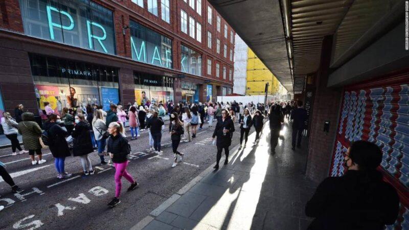 Thousands of shoppers wait for Primark to open for the first time since the latest lockdown on April 30, 2021 in Belfast, Northern Ireland.