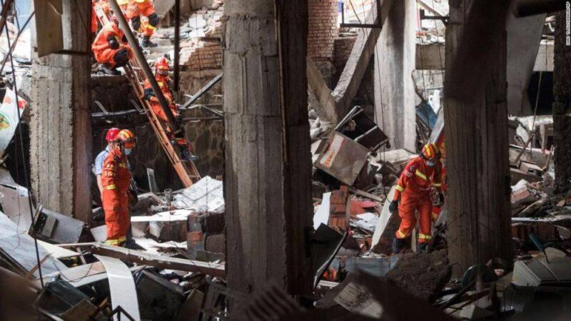 Rescue workers search for survivors in the aftermath of a gas explosion in Shiyan city in central China’s Hubei Province on Sunday.