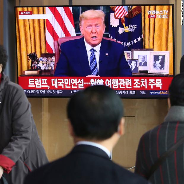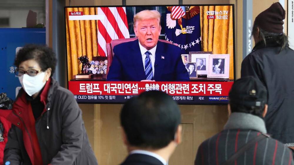 Photos: The novel coronavirus outbreak People at a railway station in Seoul, South Korea, watch a live broadcast of US President Donald Trump on March 12. Trump announced that, in an effort to slow the spread of the coronavirus, he would sharply restrict travel from more than two dozen European countries.Hide Caption 34 of 140