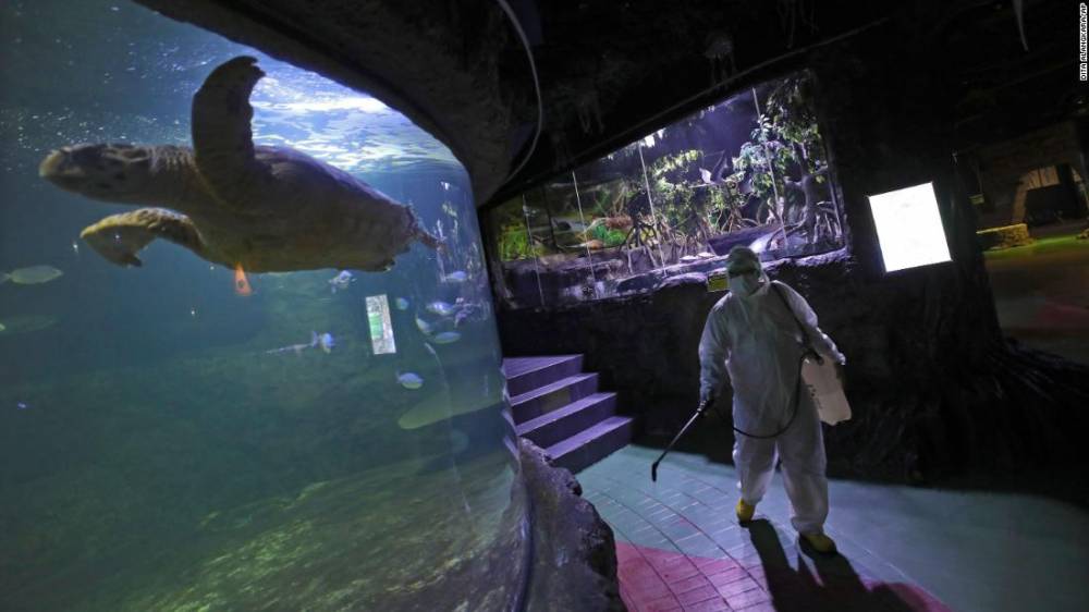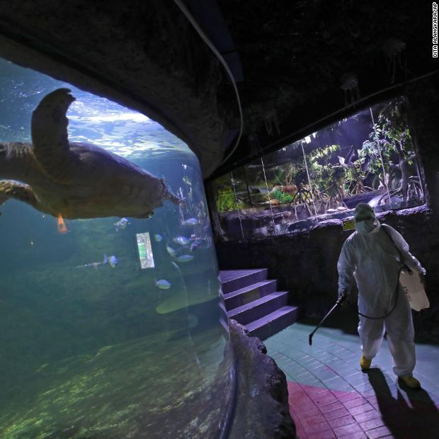 Photos: The novel coronavirus outbreak A Sea World employee sprays disinfectant in Jakarta, Indonesia, on Saturday, March 14.Hide Caption 18 of 140