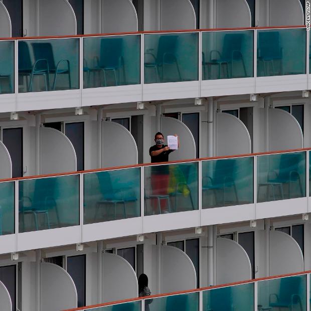 Photos: The novel coronavirus outbreak Passengers are seen on the deck of the Diamond Princess cruise ship, docked at the Yokohama Port on February 7.Hide Caption 93 of 140