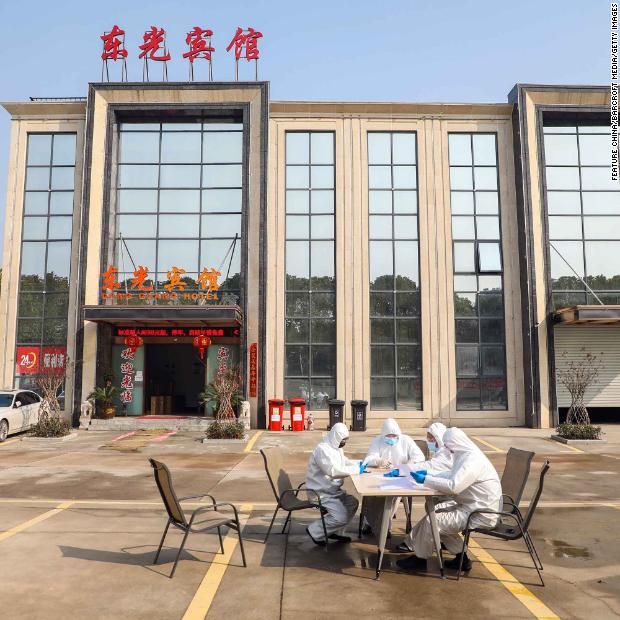 Photos: The novel coronavirus outbreak People wearing protective overalls talk outside a Wuhan hotel housing people in isolation on February 3.Hide Caption 106 of 140