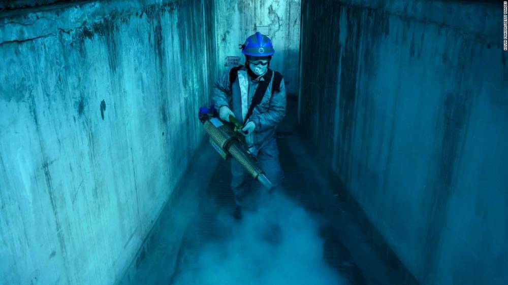 Photos: The novel coronavirus outbreak A volunteer from Blue Sky Rescue uses fumigation equipment to disinfect a residential compound in Beijing on March 5.Hide Caption 44 of 140