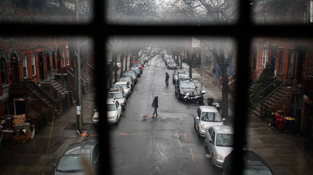 Photos: The novel coronavirus outbreak A pedestrian walks a dog through a quiet street in New York on March 17.Hide Caption 4 of 140
