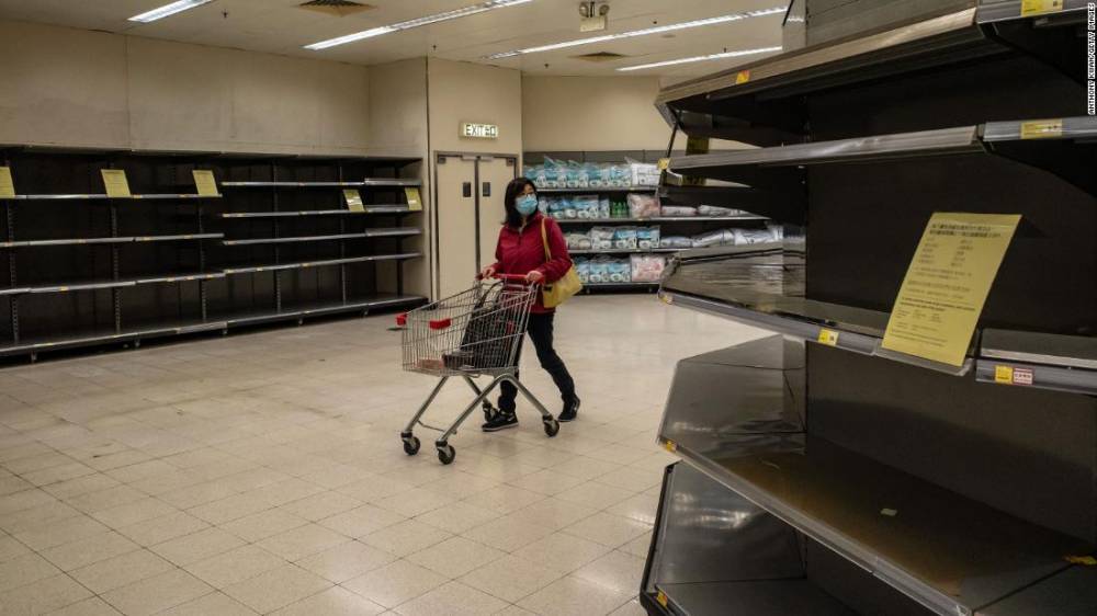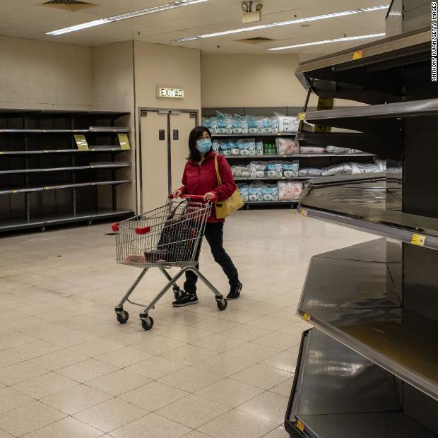 Photos: The novel coronavirus outbreak A shopper walks past empty shelves at a grocery store in Hong Kong on February 9. China’s Ministry of Commerce encouraged supermarkets and grocery stores to resume operations as the country’s voluntary or mandatory quarantines began to take an economic toll. Hide Caption 86 of 140