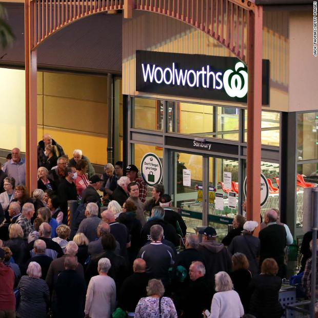 Photos: The novel coronavirus outbreak People wait outside a Woolworths store in Sunbury, Australia on March 17. Australian supermarket chains announced special shopping hours for the elderly and people with disabilities so that they can shop in less crowded aisles.Hide Caption 8 of 140