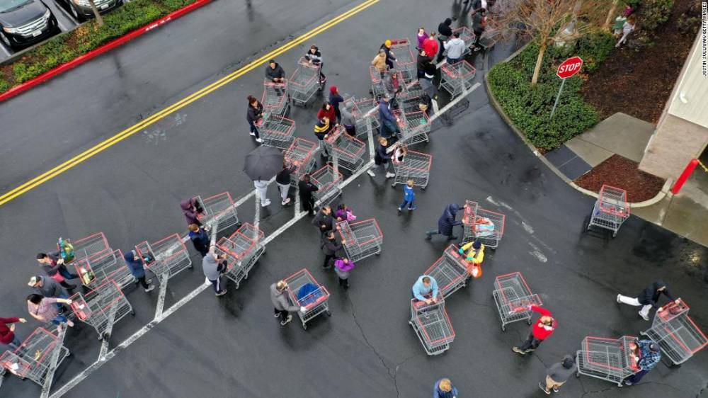 Photos: The novel coronavirus outbreak Hundreds of people lined up to enter a Costco in Novato, California, on March 14. Many people have been stocking up on food, toilet paper and other items. As a response to panic buying, retailers in the United States and Canada have started limiting the number of toilet paper that customers can buy in one trip.Hide Caption 20 of 140