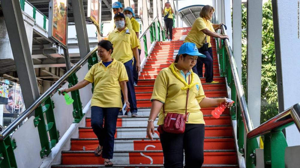 Photos: The novel coronavirus outbreak A team of volunteers disinfects a pedestrian bridge in Bangkok, Thailand.Hide Caption 68 of 140