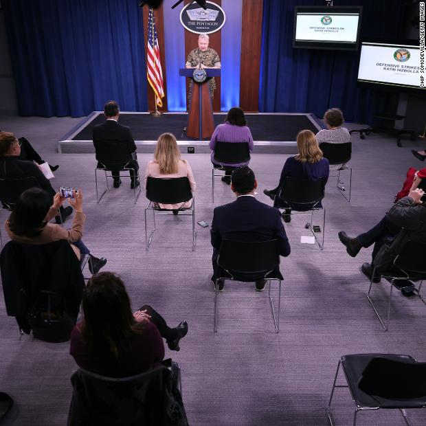 Photos: The novel coronavirus outbreak Reporters in Arlington, Virginia, sit approximately 4 feet apart during a briefing by Marine Corps Gen. Kenneth F. McKenzie on Friday, March 13.Hide Caption 22 of 140