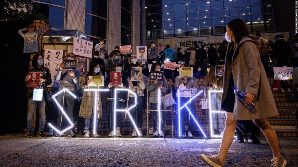 Photos: The novel coronavirus outbreak A light installation is displayed by striking members of the Hospital Authority Employees Alliance and other activists at the Hospital Authority building in Hong Kong on February 7.Hide Caption 92 of 140