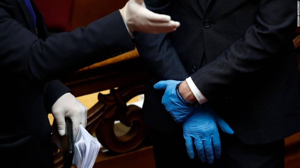 Photos: The novel coronavirus outbreak Employees of the Greek Parliament wear plastic gloves ahead of the swearing-in ceremony for Greek President Katerina Sakellaropoulou.Hide Caption 28 of 140