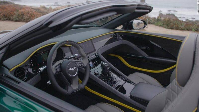 The Bacalar’s interior includes wood that’s been naturally aged for 5,000 years.Hannig told me about the car as he drove us out to a roadside overlook by the Pacific Ocean. Fortunately, while heavy clouds remained, the rain had stopped. And, for good measure, he pressed the gas pedal hard a few times, eliciting brutal acceleration and a sonorous rumble from the huge engine. While I waited for my chance to drive, I familiarized myself with the Bacalar’s unique interior. The wood trim comes from a tree that fell 5,000 years ago into a wetland and was preserved there in a process that also stained it nearly black. Bentley left the color alone. The analog clock in the center of the dashboard is light blue, the hue of Lake Bacalar in Mexico’s YucatΓ‘n Peninsula. Its water is famous for its shimmering color.The Bacalar has a three-sided rotating panel in the dashboard, a feature also available in other Bentley models, including the Continental GT. One side is “blank,” looking like the rest of the dashboard. But at the press of a button, the panel can flip around to show three old-fashioned dials, including a compass. Flip the panel again and it shows a digital display screen of the sort nearly every car has these days. There you can see a navigation map, select a song to play and do all the sorts of things drivers do with screens.About the only other interior piece the Bacalar shares with the Bentley Continental GT is a panel of switches near the gear selector. It’s largely because of that panel that the Bacalar, open to the world as it is, has air conditioning. According to Hannig, it just seemed better to keep the futile feature than to redesign the switch panel and remove the buttons.Mercedes reveals electric luxury models for on- and off-roadThe emphasis on design also means the Bacalar does not have a backup camera, even though there is a screen in the dashboard. Adding that feature would require a camera lens that, designers felt, would put an unsightly glass pimple on the car’s beautifully designed rear end. Fortunately, thanks to its four-wheel steering, the Bacalar was easily able to make a U-turn so I could pull out out of the overlook’s small parking lot.The Bacalar isn’t immediately eye-catching from the outside. To most people, it would probably register as “a nice Bentley.” Look just a moment longer and you notice the way the headlights are stretched around the front corners. You might also notice the way the hood scoops or the overall proportions of the car. The Bacalar is low and muscular, with bulges rising behind each seat. As it drives past, you would definitely notice that the back end splits into layers like a flower bud opening up.