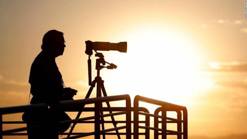 Photos: Richard Branson's historic spaceflightA photographer prepares his camera as the sun rises over Spaceport America.Hide Caption 7 of 9