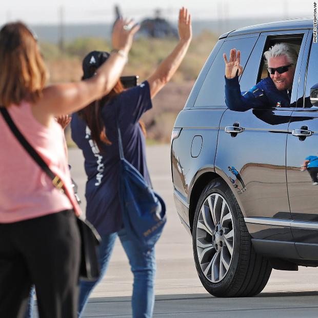 Truth or Consequences, New Mexico (CNN Business)Richard Branson became the first person to ride into space aboard a rocket he helped fund. The supersonic space plane developed by his company, Virgin Galactic, roared into the sky over New Mexico early Sunday, carrying Branson and three fellow crewmembers.