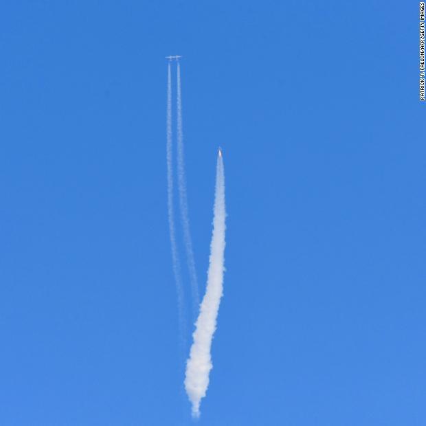 Photos: Richard Branson's historic spaceflightThe VSS Unity takes off aboard its mothership, the twin-fuselage carrier jet dubbed VMS Eve.Hide Caption 4 of 9