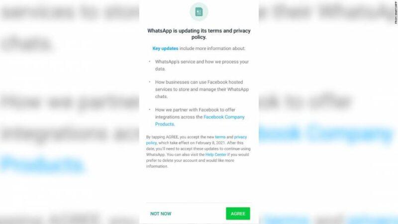 WhatsApp began notifying users last month of its updated terms of service and privacy policy, which people must agree to in order to keep using the app beyond February 8.Many users expressed concerns about a section of WhatsApp’s privacy policy that details what user data is collected and shared with parent company Facebook, which has a troubled reputation when it comes to protecting user data. All private messages between individuals and most businesses on WhatsApp are protected by end-to-end encryption, meaning the app can’t see them or share them with Facebook (users will be notified before chatting with a business where messages are not end-to-end encrypted). But WhatsApp does collect other user information, such has how and when someone uses the app, and user device information like IP addresses. WhatsApp’s privacy policy states that user information it collects may be shared with other Facebook companies “to help operate, provide, improve, understand, customize, support, and market our Services and their offerings.” However, these data sharing practices are not new, according to the company.