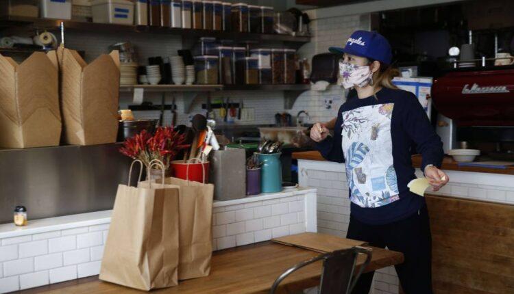 Yuka Ioroi, co-owner of Cassava restaurant on Balboa Street in San Francisco manages take-out orders on April 8, 2020.San Francisco Chronicle/Hearst Newspapers via Getty Images