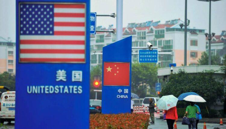 Signs with the US flag and Chinese flag are seen outside a store selling foreign goods in Qingdao in China's eastern Shandong province on Sept. 19, 2018.AFP | Getty Images
