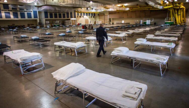 A temporary hospital which is been settled up by members of the California National Guard is seen in Indio, California on March 29, 2020.Apu Gomes | AFP | Getty Images