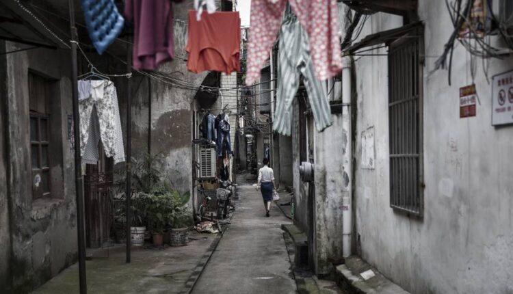 Clothing hangs from laundry lines as a woman walks past residential buildings in Wuhan, China, on June 14, 2017.Qilai Shen | Bloomberg | Getty Images