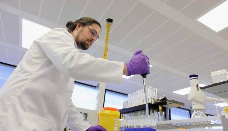 A French National Centre for Scientific Research (CNRS) researcher holds a test tube rack containing cells to be infected with Covid-19 during coronavirus vaccine research work inside the Pasteur Institute laboratories in Lille, France, March 9, 2020.Adrienne Surprenant | Bloomberg | Getty Images